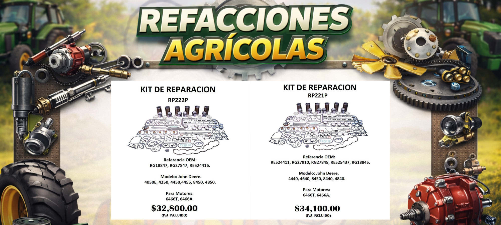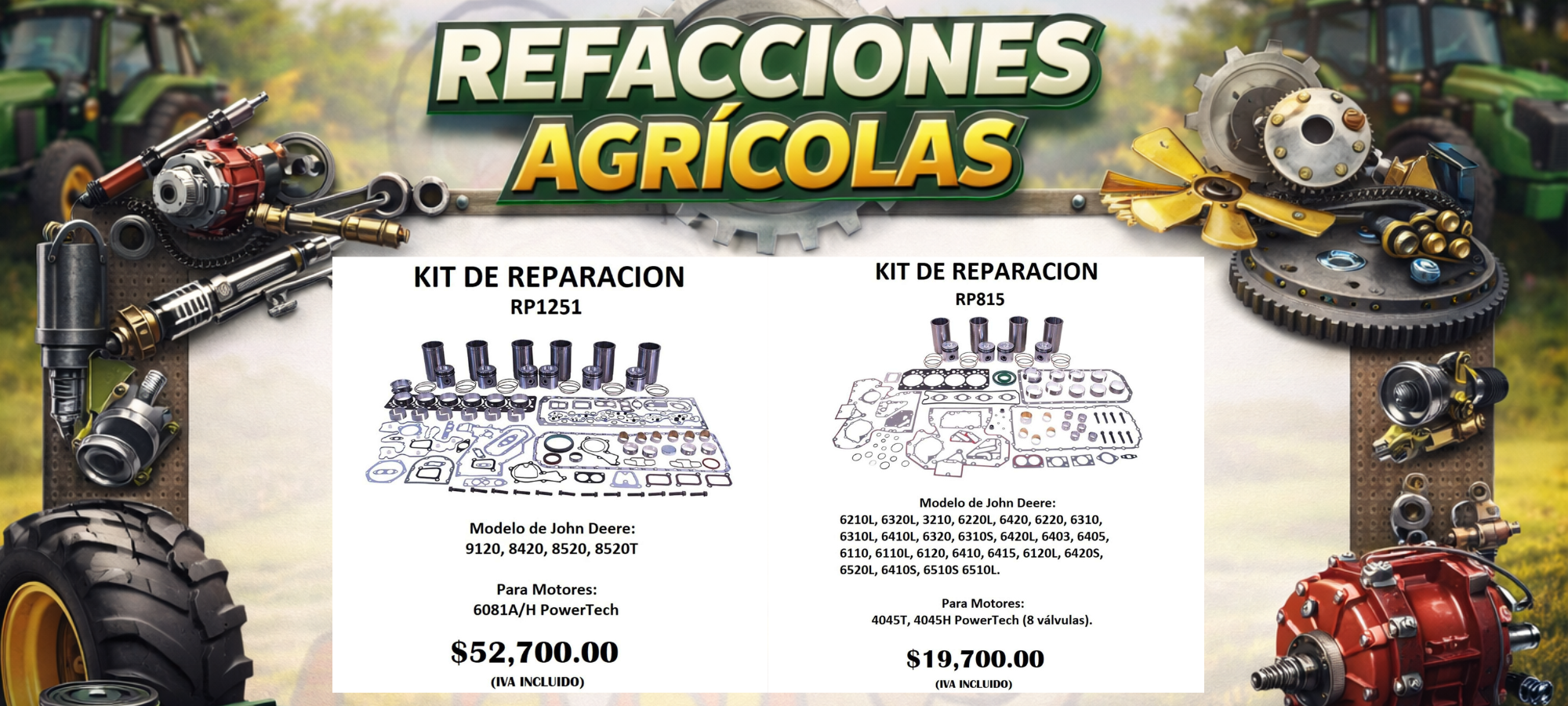Disponemos de refacciones para mantenimiento y reparacion, como filtros, pistones, empaques, bombas y componentes internos, brindando soluciones confiables y atencion rapida para mantener tu maquinaria agricola siempre en operacion.