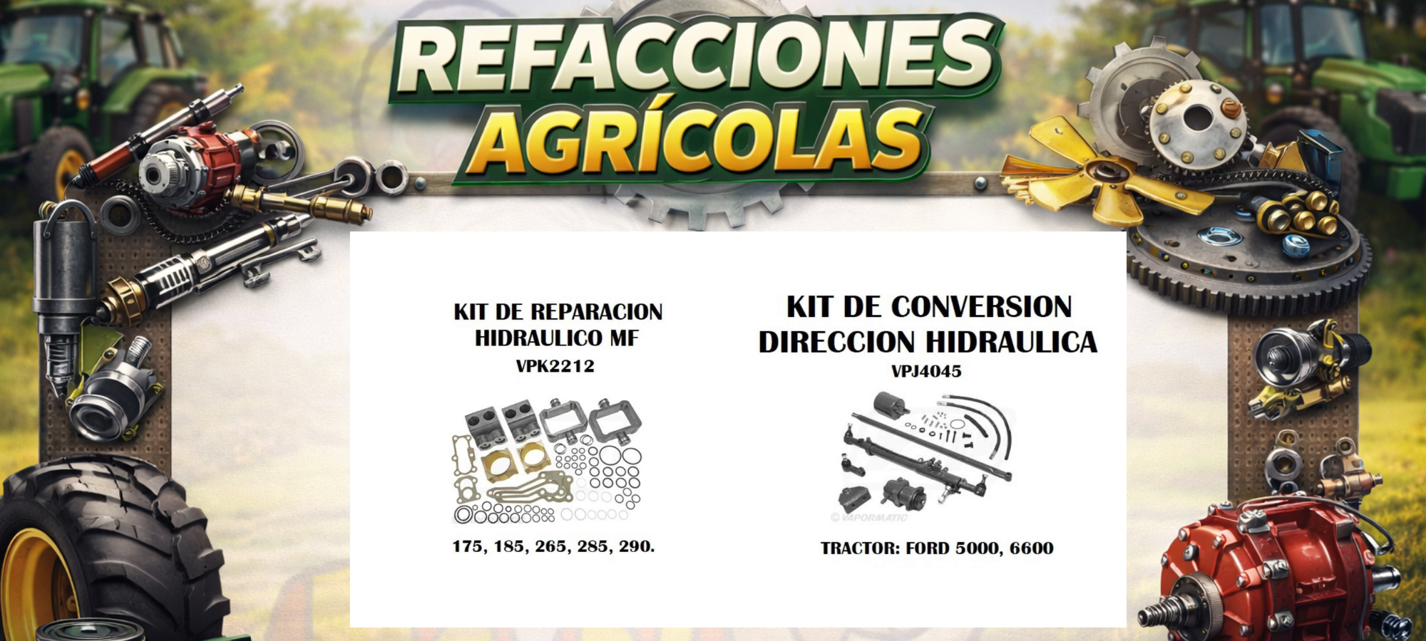 Ofrecemos una amplia seleccion de refacciones agricolas Massey Ferguson para tractores y maquinaria del campo. Contamos con piezas confiables y de alta calidad que aseguran buen desempe?o, resistencia y compatibilidad, ideales para mantener tu equipo trabajando de forma eficiente.