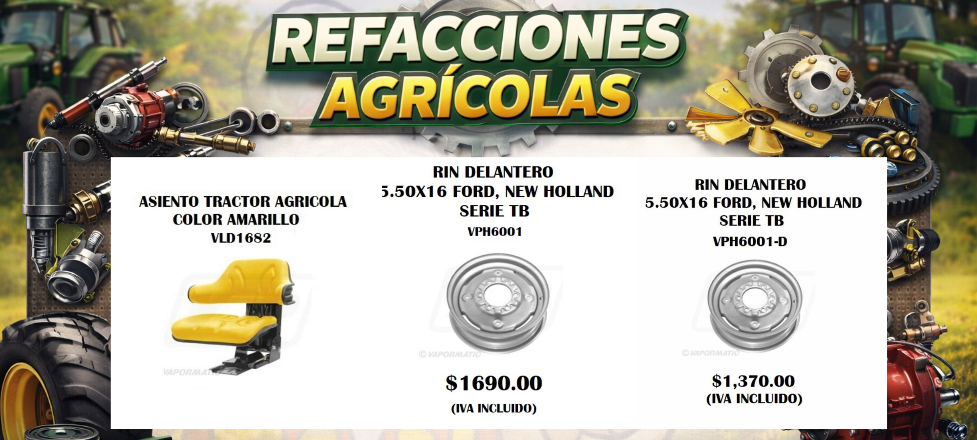 Contamos con refacciones para mantenimiento y reparacion, como filtros, bandas, baleros, componentes electricos, hidraulicos y piezas mecanicas, ideales para tractores y equipos agr¨ªcolas de distintas marcas. Vapormatic es una excelente opcion para mantener tu maquinaria funcionando de forma eficiente y segura.