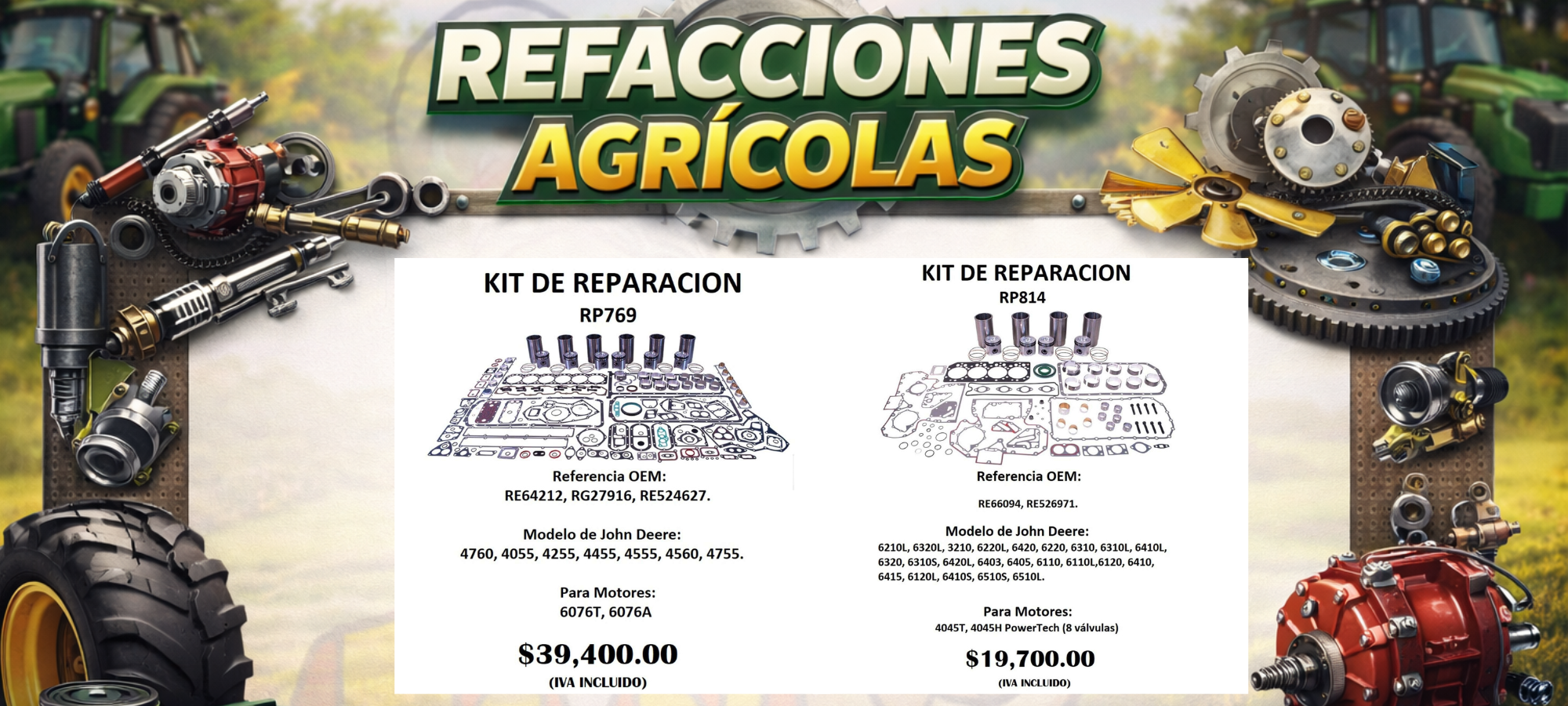 Disponemos de refacciones para mantenimiento y reparacion, como filtros, pistones, empaques, bombas y componentes internos, brindando soluciones confiables y atencion rapida para mantener tu maquinaria agricola siempre en operacion.