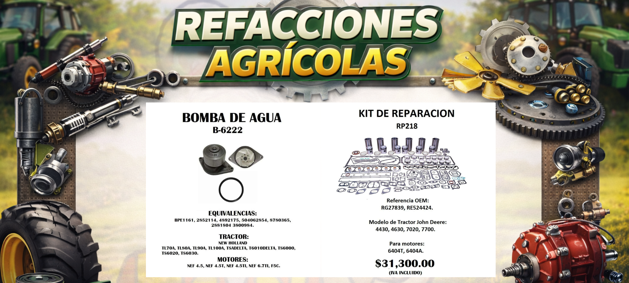 En Agro Partes Don Goyo ofrecemos refacciones agricolas para tractores y maquinaria del campo. Contamos con piezas de calidad para mantenimiento y reparacion, atencion personalizada y envios rapidos, ayudando a mantener tu equipo siempre en operacion.